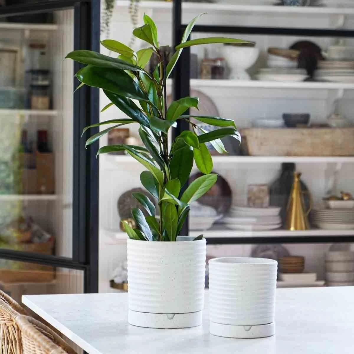 The Bespoke Luna Stoneware Planter and Saucer is designed with elegancy in mind. With a contemporary design, this planter pot beautifully compliments a home, whether it be as a signature piece on the mantel or outside in the garden. The Planter and saucer proves to be versatile, catering to any type of plant whether it be artificial, indoor or succulent plants, letting you garden easily.