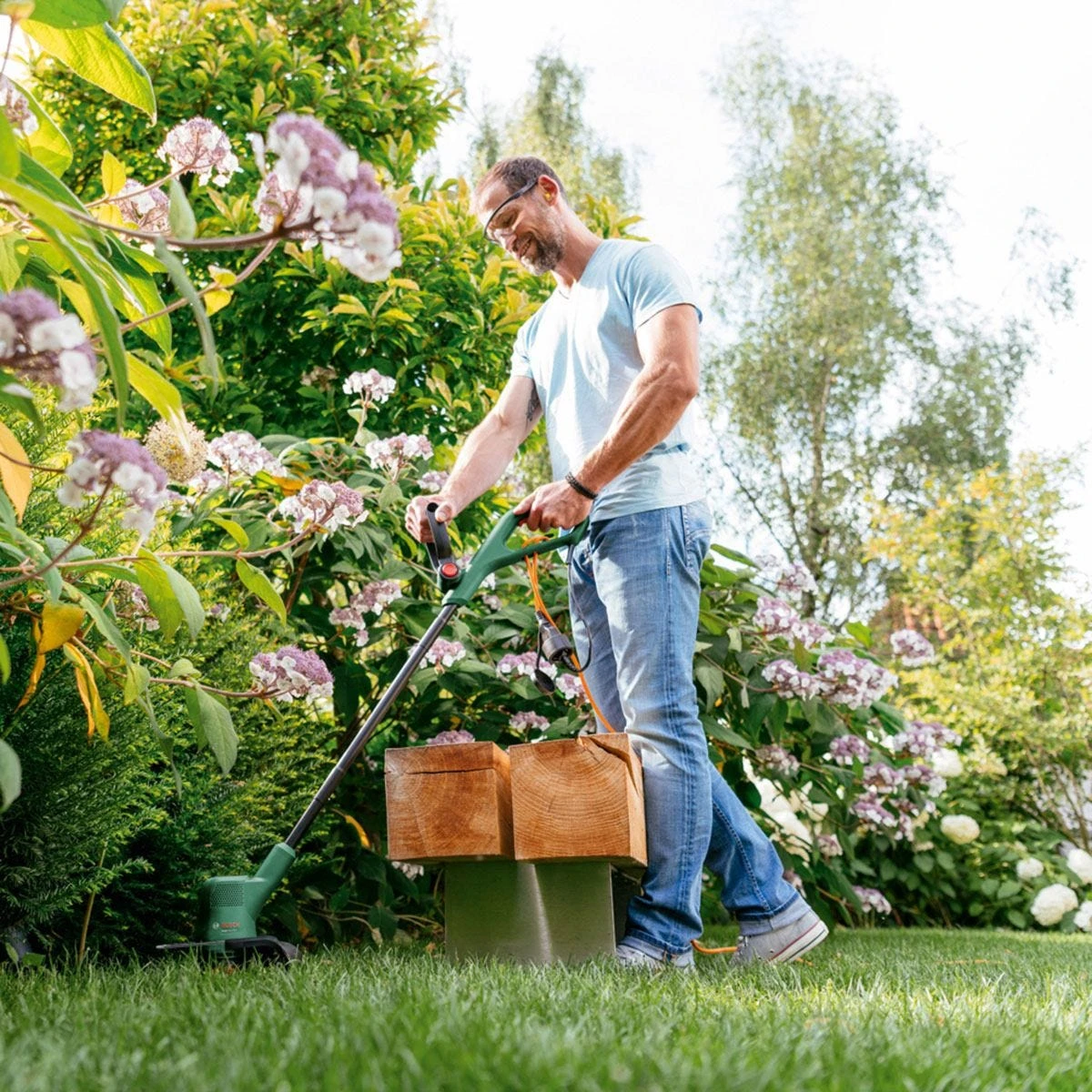 The EasyGrassCut 23 is a lightweight corded lawn trimmer designed for comfort and convenience. It features a balanced low weight for easy handling and manoeuvring, reducing user fatigue particularly with extended use. The semi-auto spool feeds the spool line at every trigger release, eliminating the need to manually adjust the spool, or bump the head. This ensures continual, uninterrupted, and worry-free trimming. The tools high-quality finish, combined with a powerful motor and a durable cutting line, ensures ideal cutting results and a long performance lifetime.