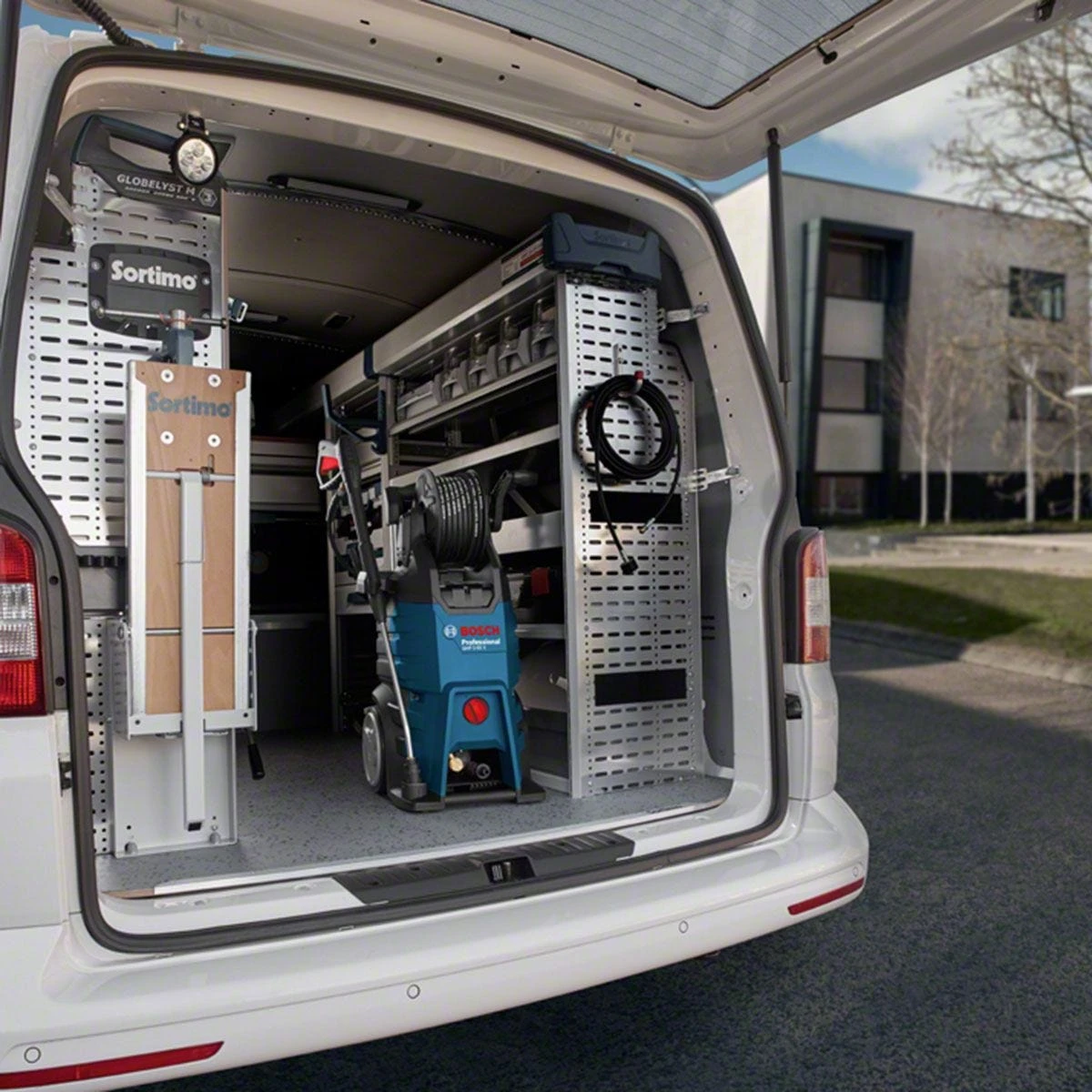 The GHP 5-65 X high pressure washer is compact for easy manoeuvrability and storage due to metal telescopic handle and large rubber wheels, conveniently ready to use out of the box. Practical storage options for lance and nozzles even during ongoing work. Can be used both in horizontal and vertical positions. Self-priming, meaning it can draw water from a pressure-less water source. The automatic motor and pump stop reduces the consumption of electricity and water.