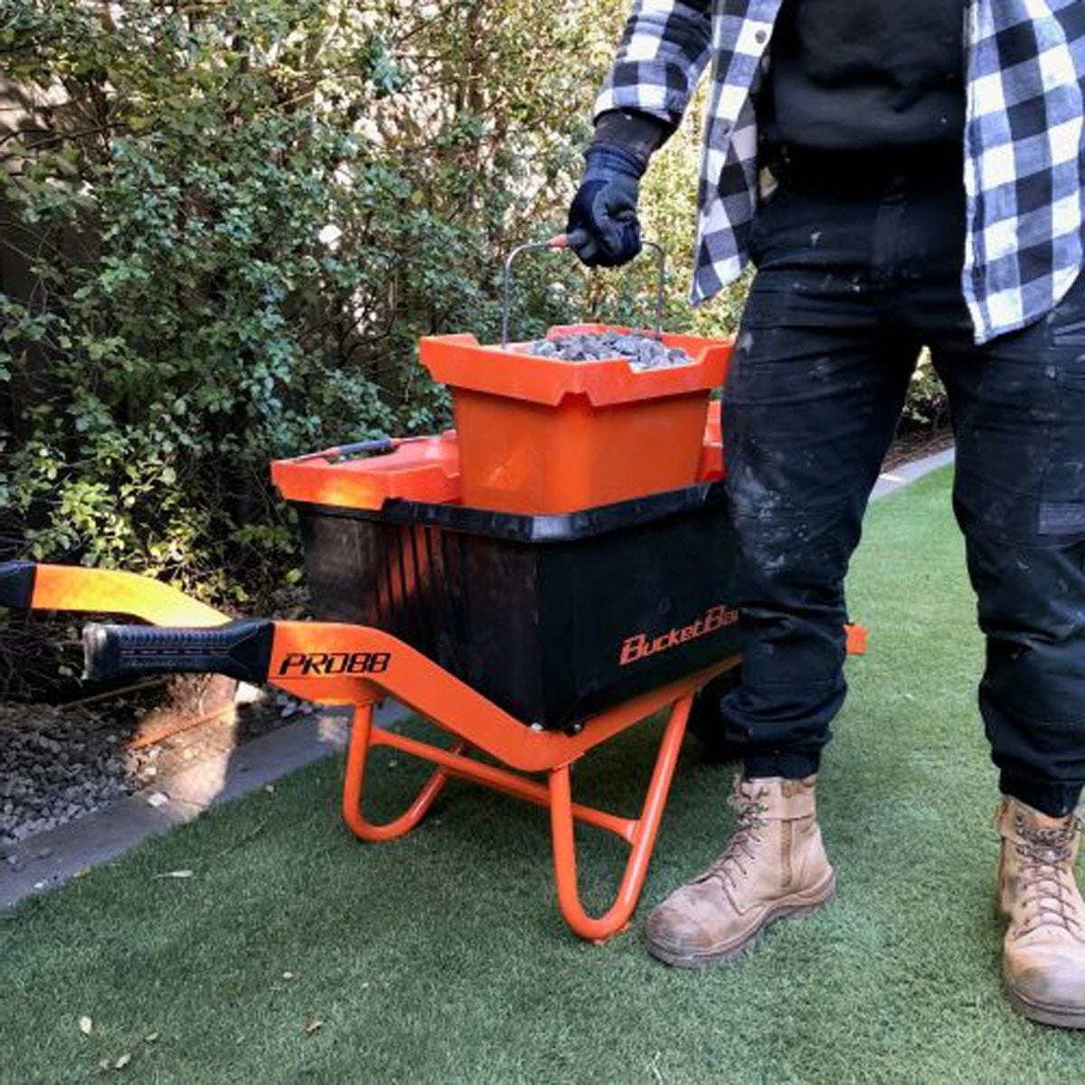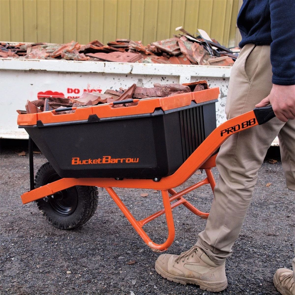 Complete your landscaping, gardening, building and other projects Safer, Easier and Faster with the PRO88 Kit, a unique design of wheelbarrow with integrated and removable accessories. The PRO88 is a toughened, all purpose wheelbarrow ideal for DIY, property maintenance, building and landscaping. Its narrow design and large load carry capacity excels even on sites with tight access.