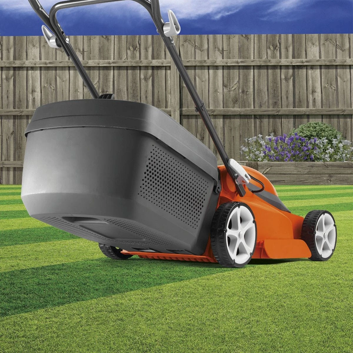Featuring a wide cutting width of 34cm (13 inch) and a powerful 1400w motor, this machine is capable to tackling all of your grass cutting needs. Suitable for a small to medium sized garden, it utilises a 35 litre collection bag for ease of use and an adjustable cutting height to tailor the mowing to your lawns needs.