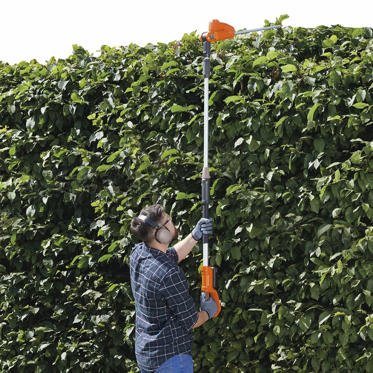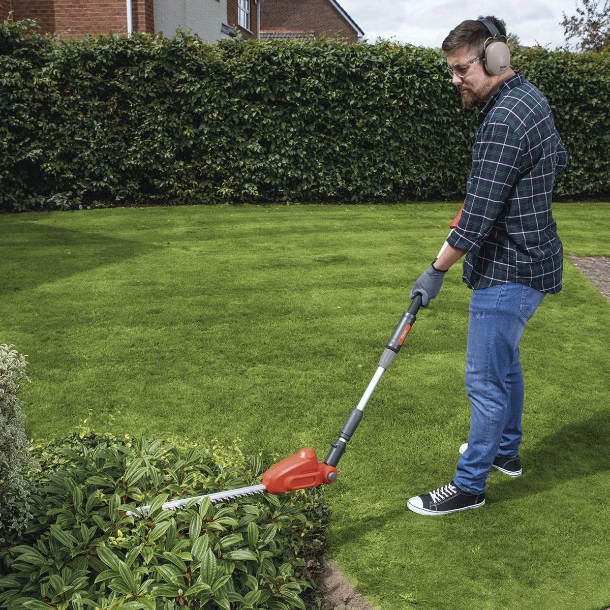 - Long-reach – With a length of 2.1m, this trimmer is great for reaching those taller hedges and bushes without the need for a ladder.