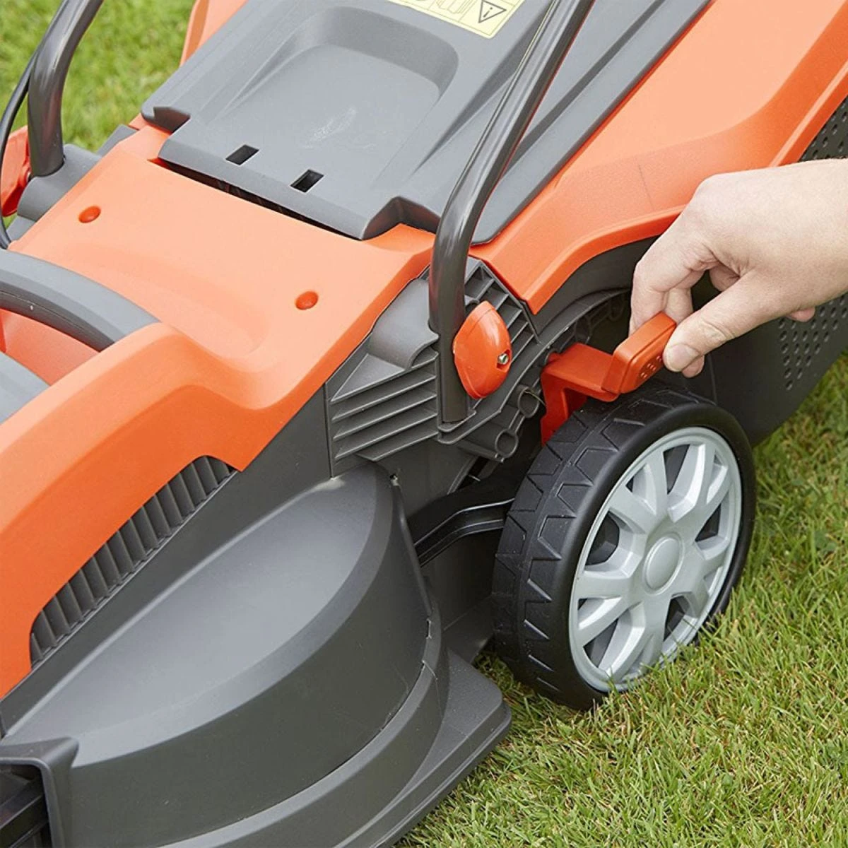 - Single height lever adjustment – Makes it easy to switch between the five cutting heights.
