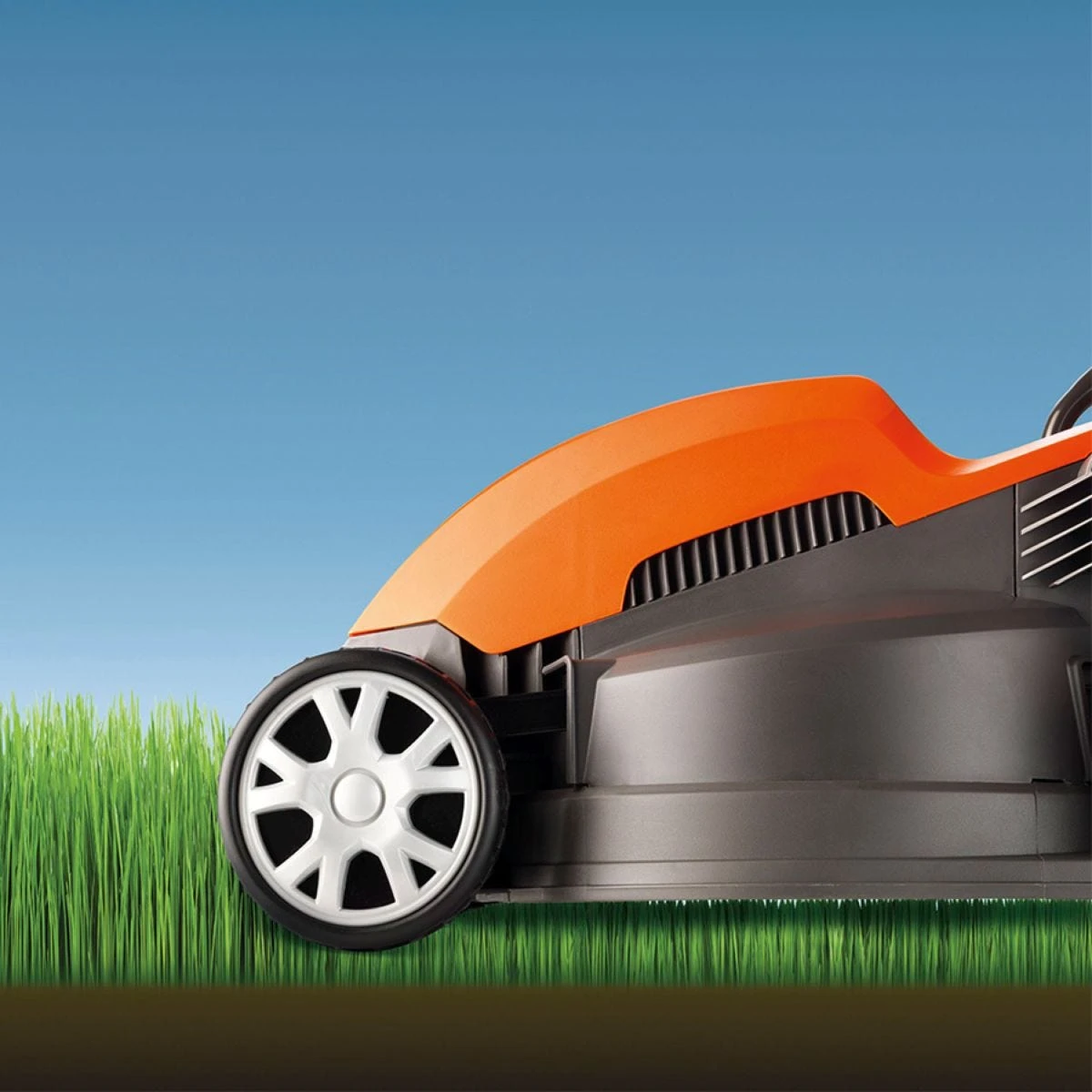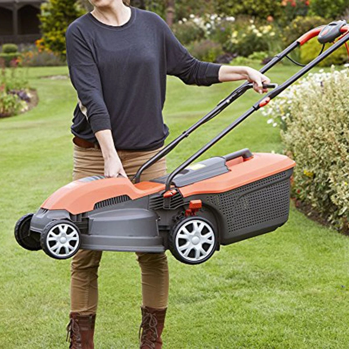 - Folding handles – Ensuring this compact mower can be easily stored away.