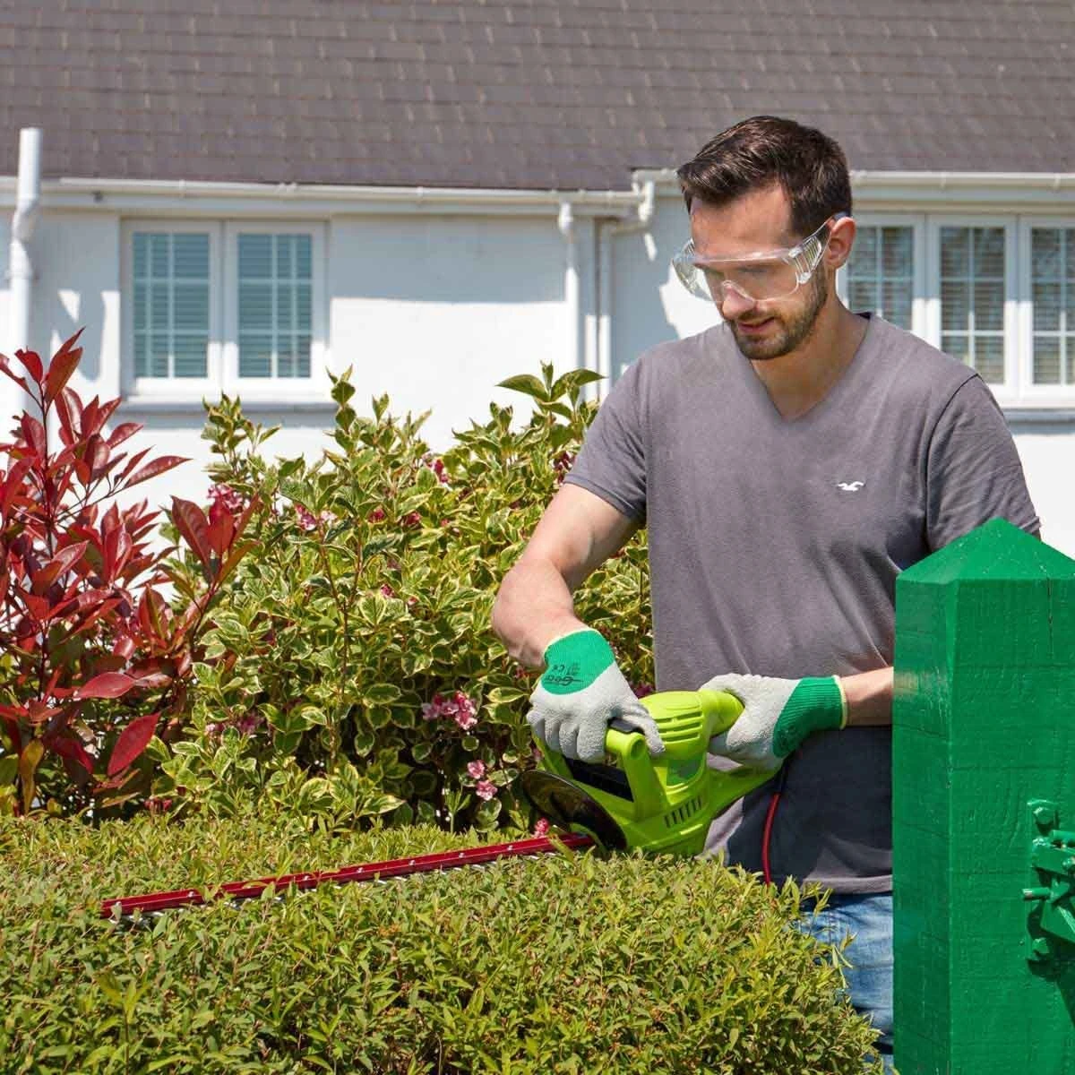 Cut hedges with your feet firmly on the ground using this 600W electric hedge trimmer from Garden Gear.