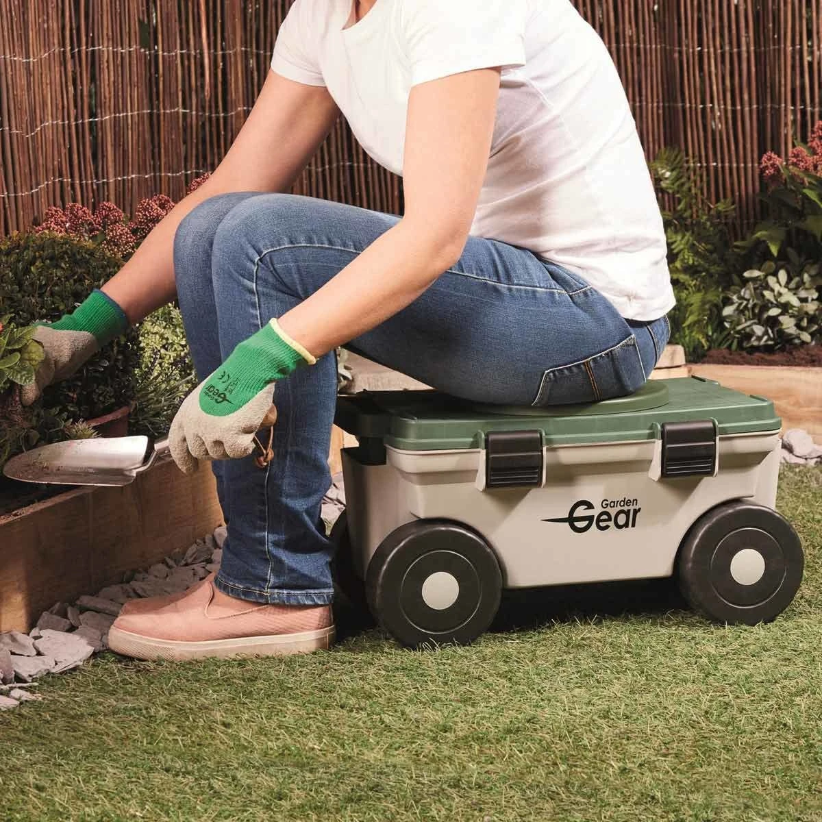 Take the pain and strain out of gardening with this rotating garden seat and tool store by Garden Gear. The seat is great to use whilst weeding, tending to your flowerbeds or tidying up lawn edges. This seat comes complete with a handy tool store that can be used for keeping garden tools organised and close to hand whilst working.