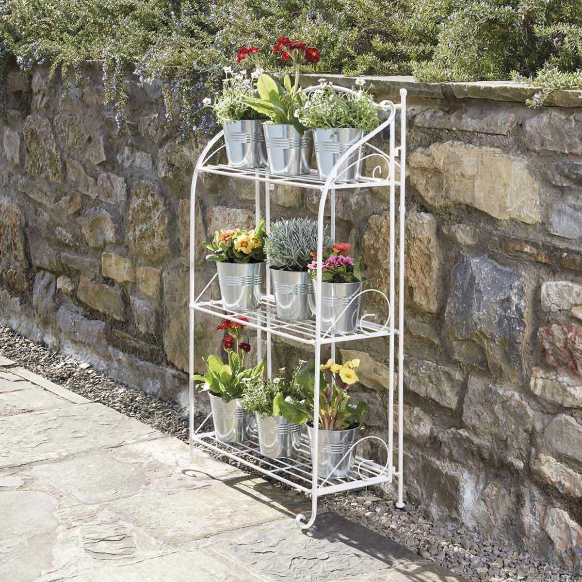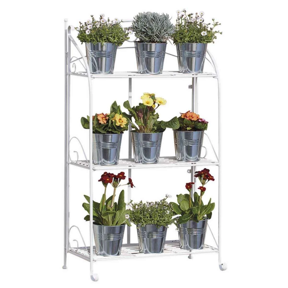 Display your plants in style with this three-tier folding metal plant stand from Garden Grow.