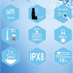 Mylek 750W Submersible Electric Water Pump With Layflat Hose – Blue