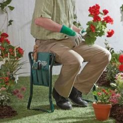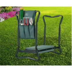 Gardenkraft Folding Portable Garden Kneeler With Tool Bag – Green