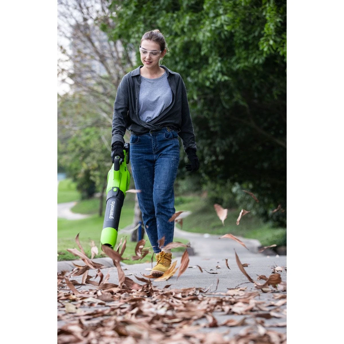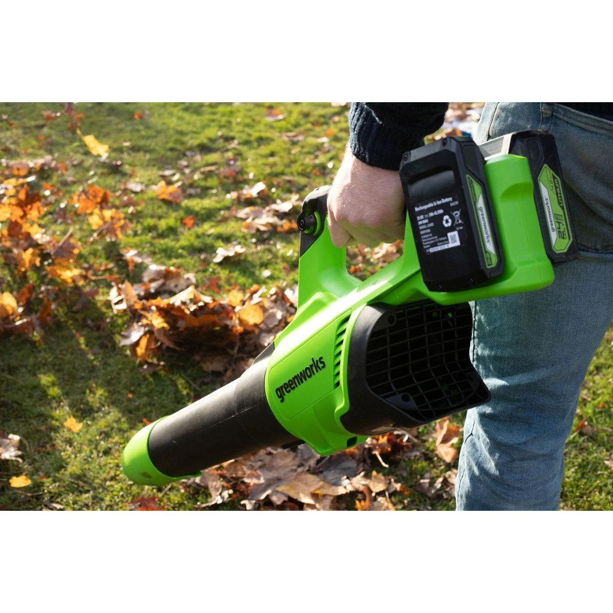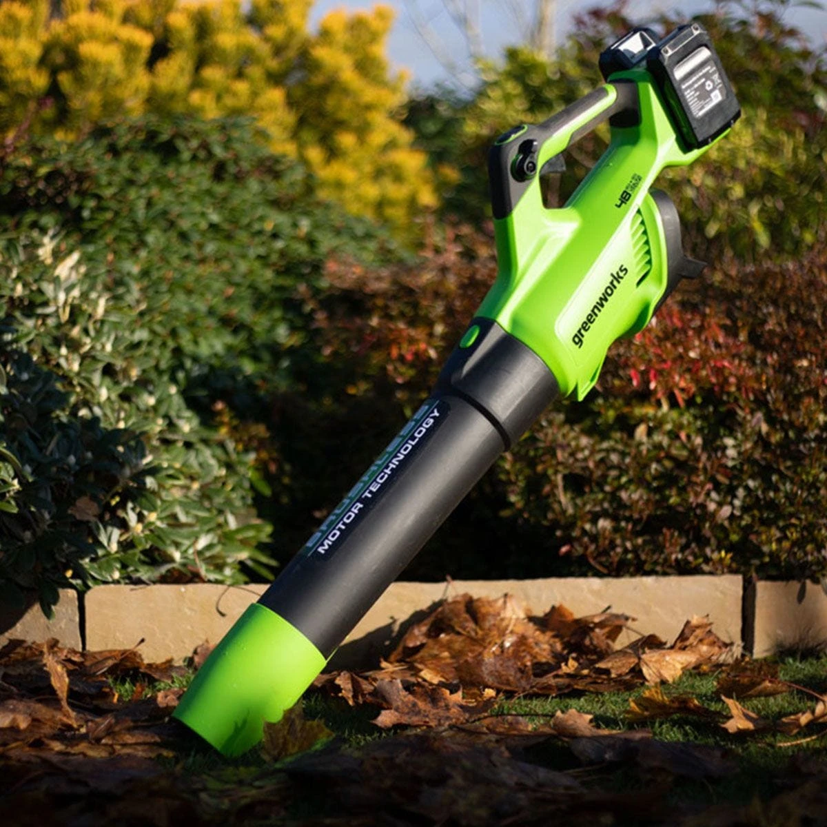 The Greenworks GWGD24X2ABK2X 48v cordless leaf blower is ideal for small to medium gardens thanks to a compact and lightweight design. Power comes from Greenworks innovative Dual Voltage Technology, utilising a single battery which automatically delivers either 24V or 48V power depending on the tool in use.
