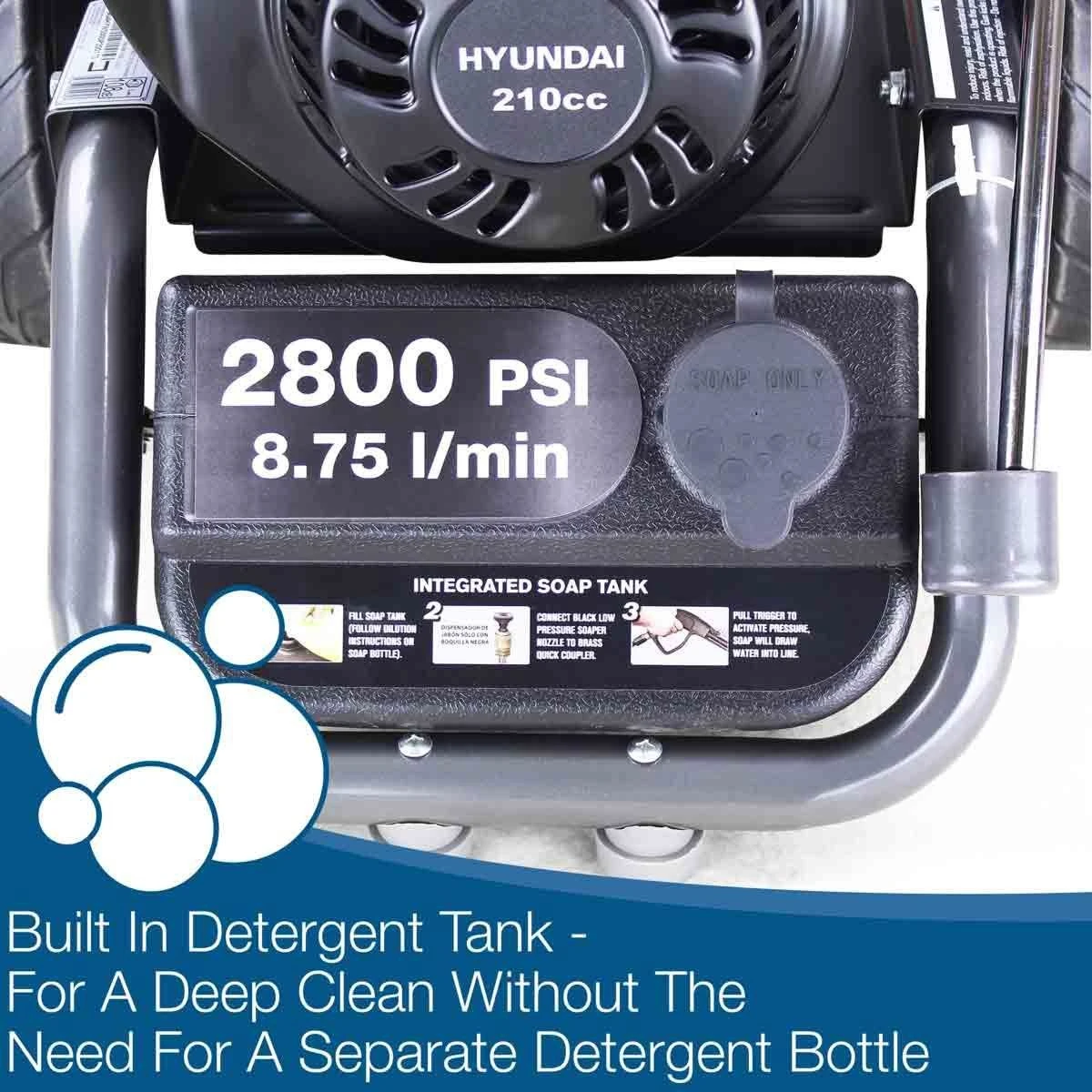 - Fast and effective – The hyw3000p2 delivers 2800psi and a flow rate of 8.75l/min from its triple stainless steel piston high-pressure pump for quick, easy and effective cleaning. This jet washer also features a built-in detergent tank for deep cleaning, also ideal for vehicle cleaning.