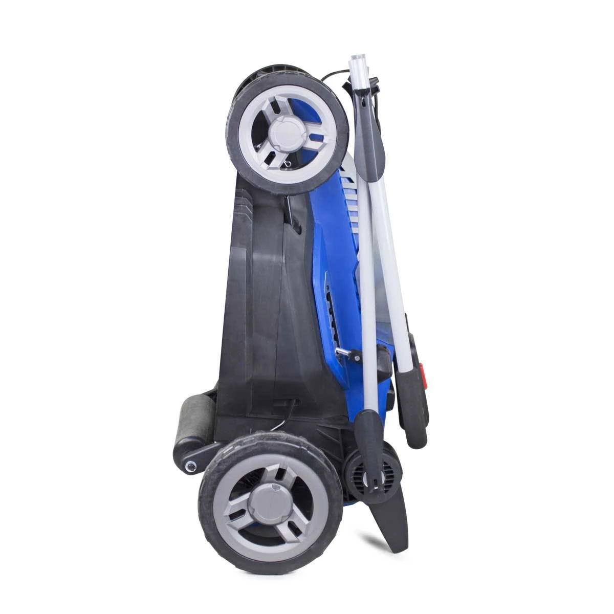 – Using the mower couldn’t be easier, you simply have to insert the safety key, engage the lock-out button and pull back the Operator Presence Control lever. This easy starting method removes the strain associated with recoil pull-start lawnmowers.The handles fold down over the main power unit, which makes this compact lawn mower easy to carry and store in a garden shed, garage and transport in the boot of your car.
