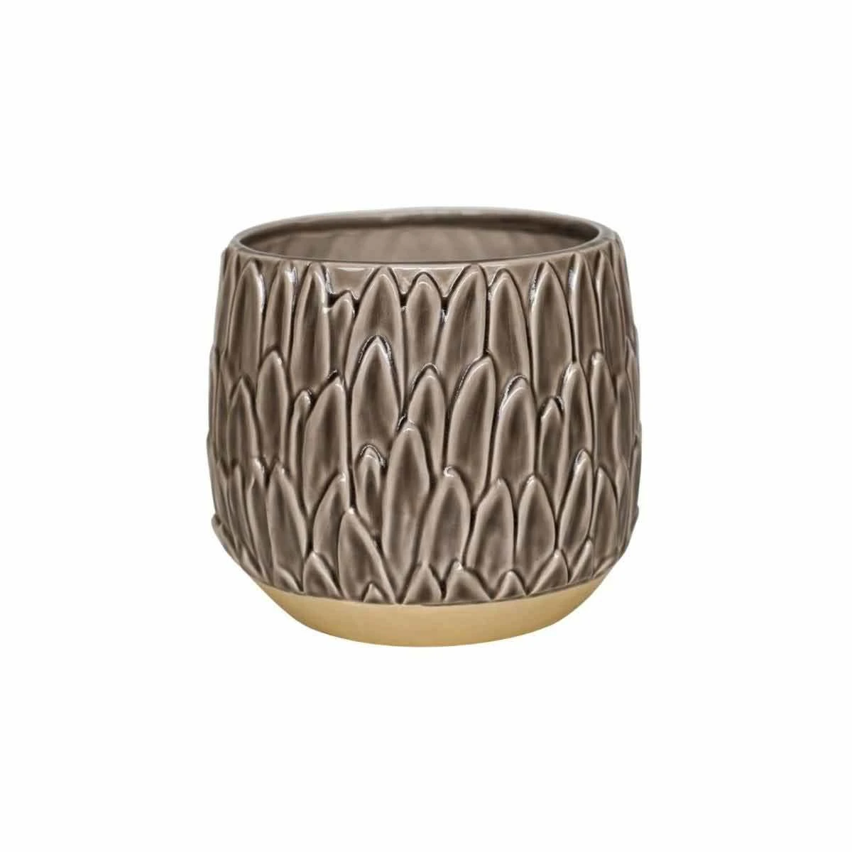 Ivyline Arles Leaf Embossed Mocha Planter – H20Cm D22Cm