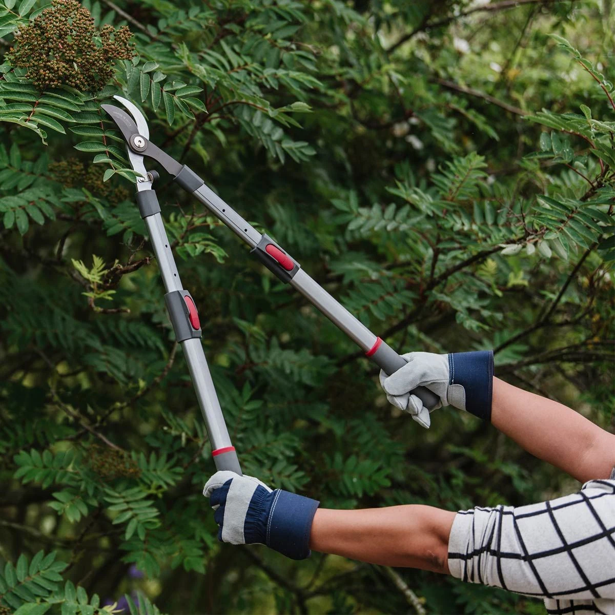 Kent & Stowe Telescopic Bypass Loppers used to cut delicate stems as well as other pruning tasks. These loppers include premium ground carbon steel blades with non-stick PTFE coating for rust resistance and a smoother cut.Loppers are ideal for larger stems or branches that are out of hands reach or too large to cut with secateurs, requiring 2 hands. Bypass action loppers have 2 sharpened blades that pass over each other to make a precise clean and healthy cut. Ideal for rose bushes, shrubs and general pruning of green live wood.