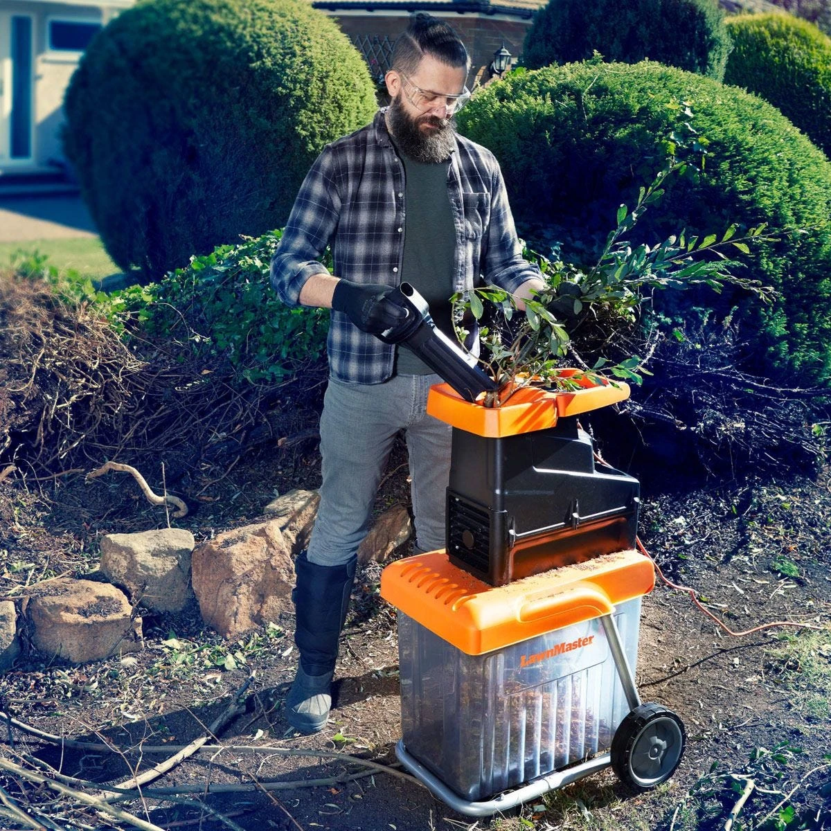 This LawnMaster drum shredder features a powerful cutting drum that can handle branches up to 42mm in diameter. Driven by the T-Drive system, the durable cutting drum rotates against a steel plate at a speed of 45rpm making this shredder much quieter than rapid or impact shredders. Use the chippings either as a mulch in the garden to help suppress weeds, enhance nutrients and retain soil moisture. Or simply shred to reduce volume for compact disposal in your composter or green waste bin.