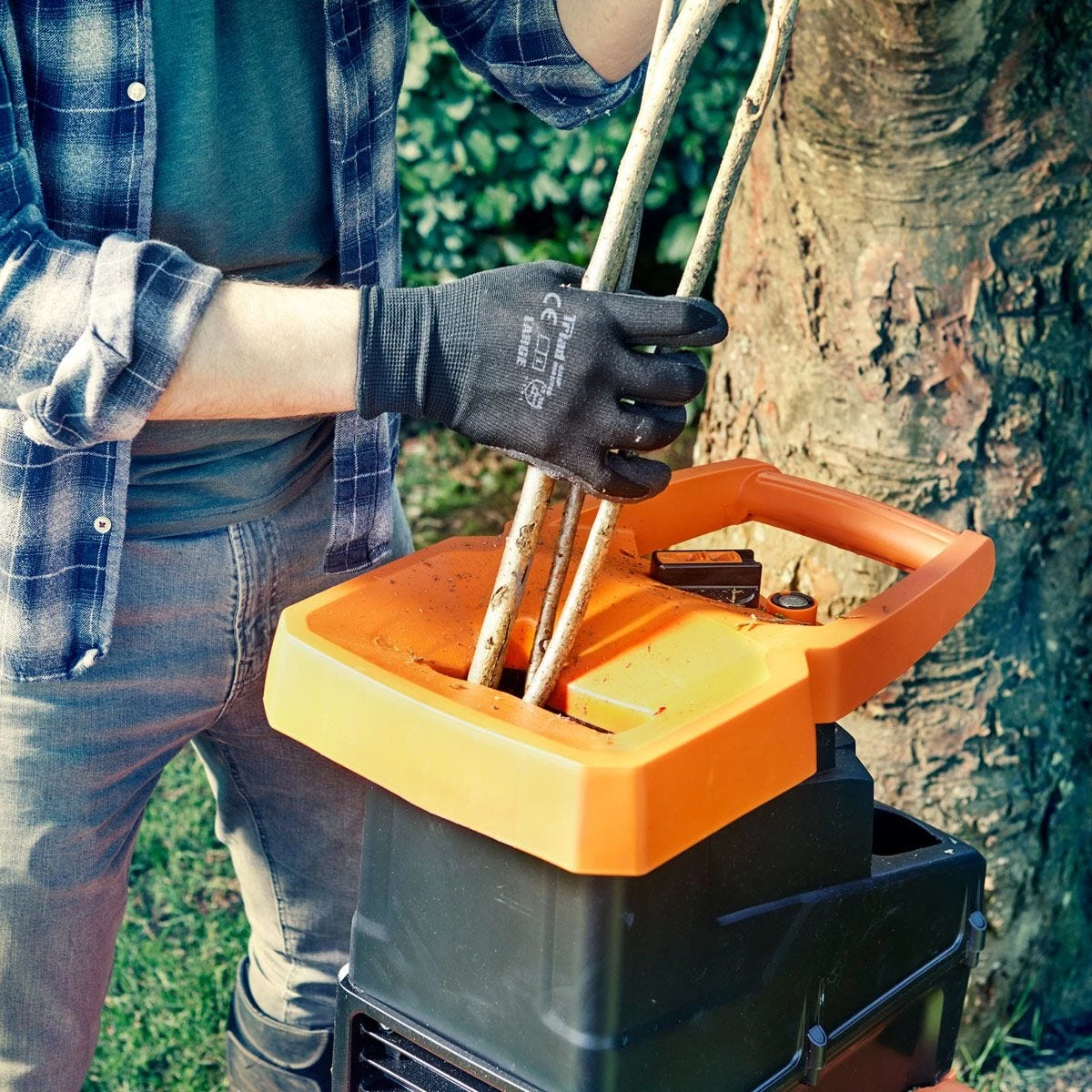 Comes with a feeding stick to help push leafy material into the shredder and keep hands safely out of the hopper and cutting drum. Jams can easily be cleared using the reverse setting or by opening up the hopper with the hex key provided. Overload cut out protects the motor from overheating. Features a strong steel frame construction, extra large 60L collection box, and large wheels for better manoeuvrability. The hopper can be removed from the frame and stored inside the collection box when not in use.