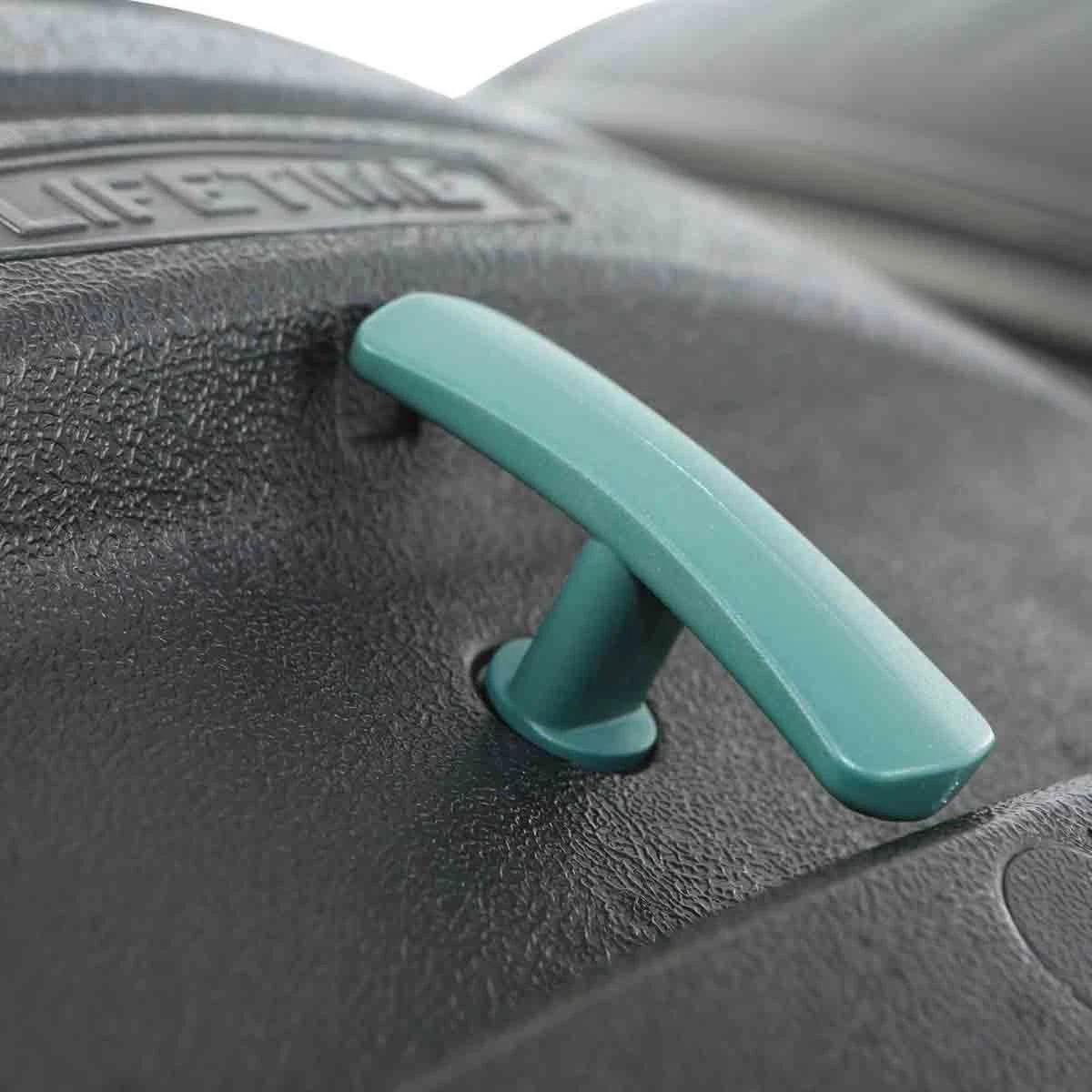 Featuring two 50-gallon (6.7 cubic ft.) tumblers, the Lifetime Dual Compost Tumbler is the perfect addition to your backyard. The ingenious tumbler design is perfect for easy batch composting. Both tumblers turn for balanced rotation, and the internal aeration bar mixes compost and provides air flow. Constructed of high-density polyethylene (HDPE), the Dual Compost Tumbler is durable, UV-protected, and has dark, double-wall panels to absorb and retain heat. For added convenience, it has an extra large removable lid and a spring-loaded pin that locks rotation during filling.