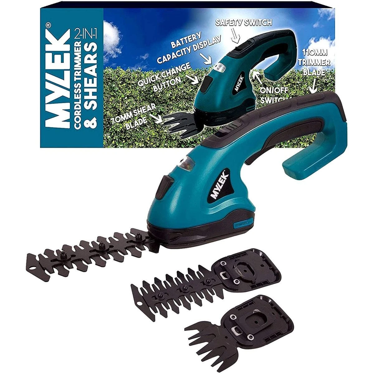 The MYLEK 2-in-1 Cordless Trimmer & Shears are perfect for trimming leafed hedges, bushes, shrubs, grass and more and allows you to reach into awkward places with ease!