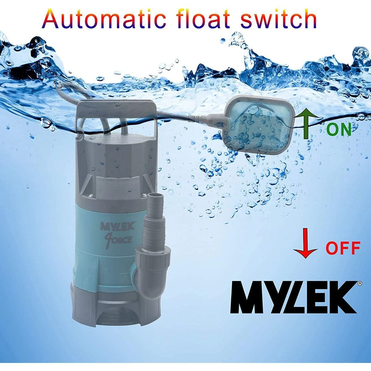 - MYLEKs hard-wearing design is ideal for dealing with dirty floodwater. It can handle particles of up to 35mm in size, so it wont get clogged up by all the debris that appears in dirty water. This means its more than safe enough to use in clean water, too, so you can use it to drain pools, wells, and water from leaking boilers or washing machines