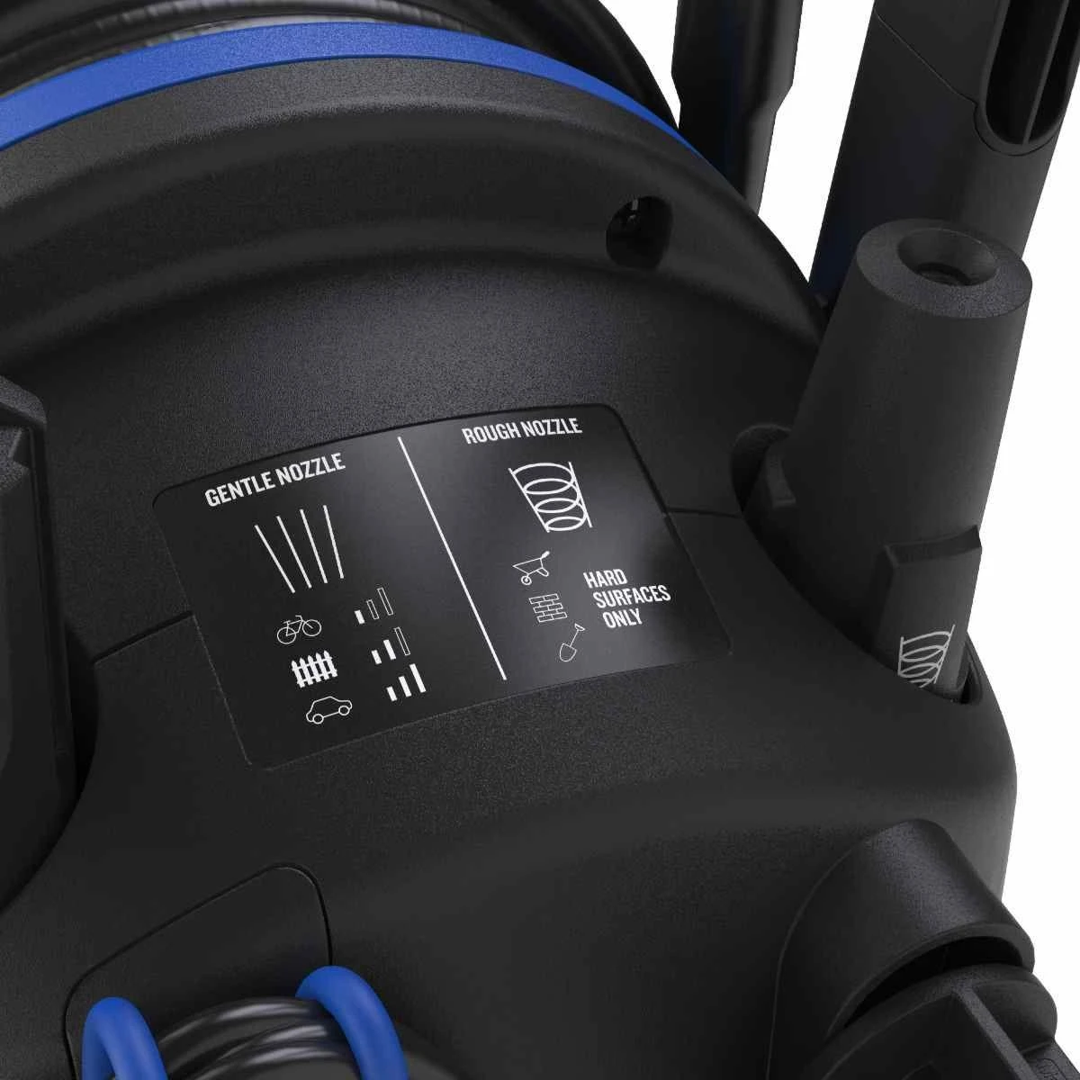 With a compact, lightweight design, this pressure washer can be manoeuvred swiftly throughout and after your cleaning spree. After use, simply wind up the hose, reattach your lance and spray handle, and slot in the nozzles for space-saving storage.