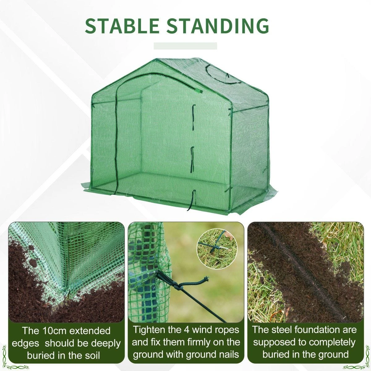 - PLASTIC COVER: Protects inside from light rain, mild wind, also creates a barrier between direct sunlight, allowing plants to grow without any interruptions. 10cm overlap to bury in the soil