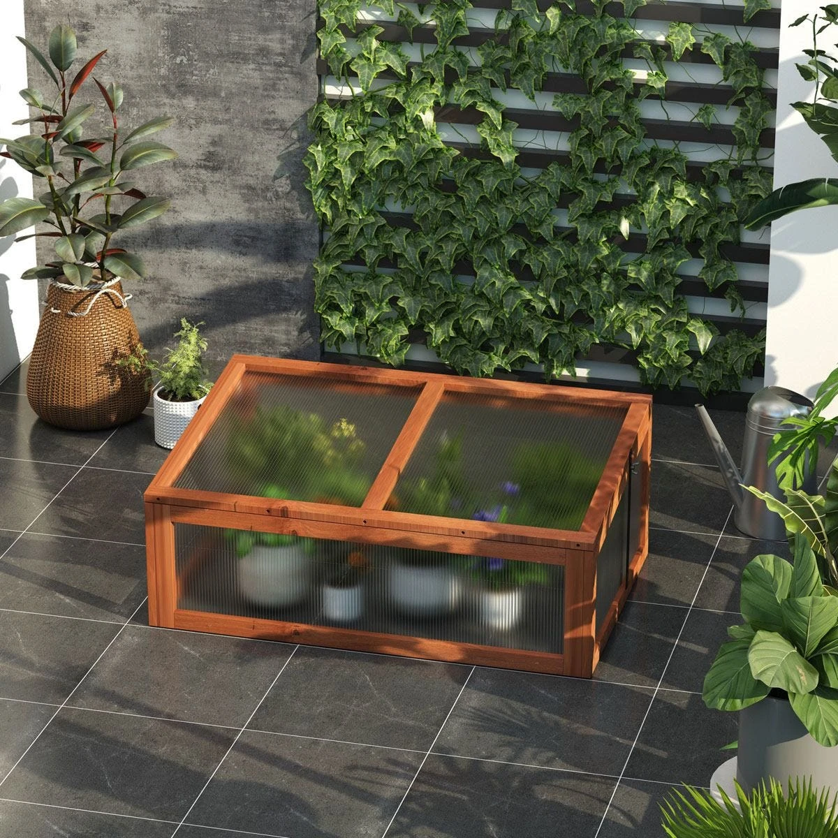 - EFFECTIVE PROTECTION: Transparent polycarbonate board cold frames for garden keeps your plants warm and protects them from light wind and light rain. This mini greenhouse wooden can also extend growing season and offers ideal temperature for your lovely plants