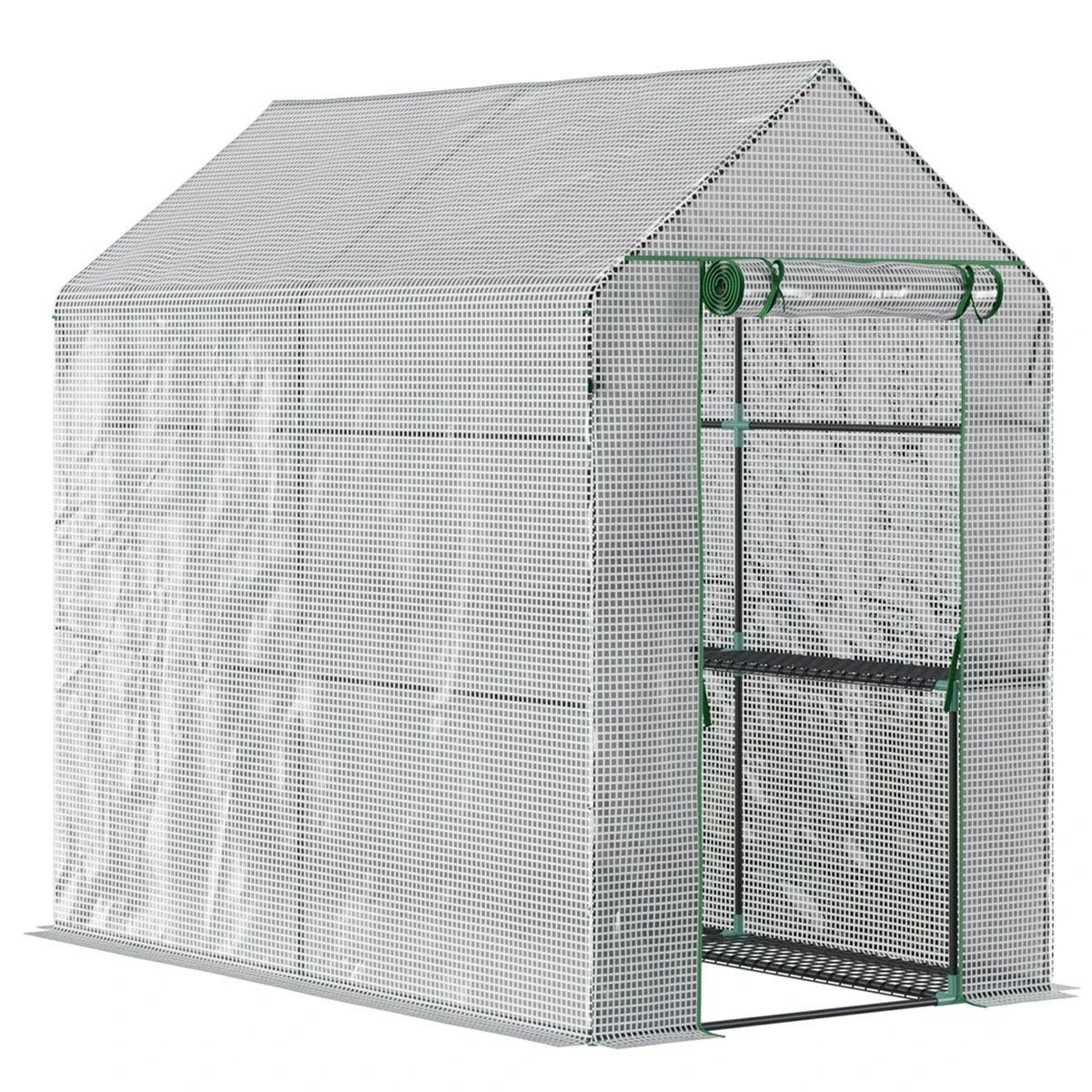 Looking for a way to grow crops all year round? Do it with this Outsunny walk-in greenhouse. Steel frame for a tough core, it’s fitted with a PE plastic cover for shelter against the elements. The roll-up door ensures easy access. Inside, there are four wired panels for easy storage and organisation. Update your garden, grow plants and fall in love with your garden all over again.
