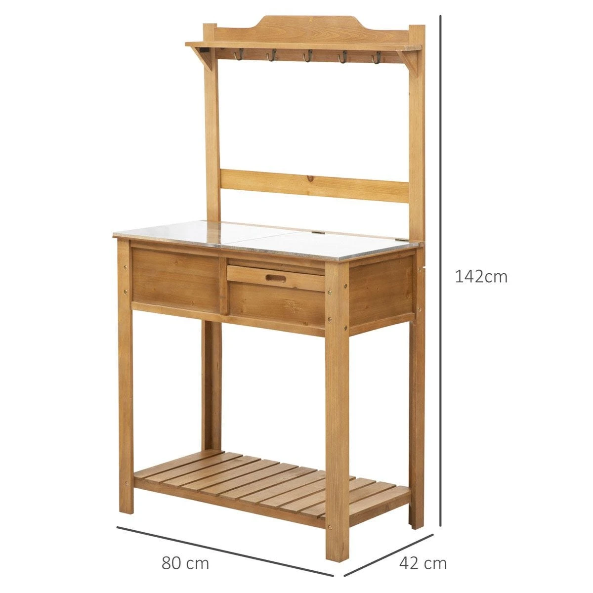 This Outsunny work table is a must for those who love to keep their garden looking its best. An all-in-one-place design, it features a main worktop, slatted bottom shelf and small top shelf with hooks. The fir wood structure is solid and tough, and the large tabletop gives you plenty of room for trimming and pruning your plants and flowers. Step up your gardening game with this fantastic piece.