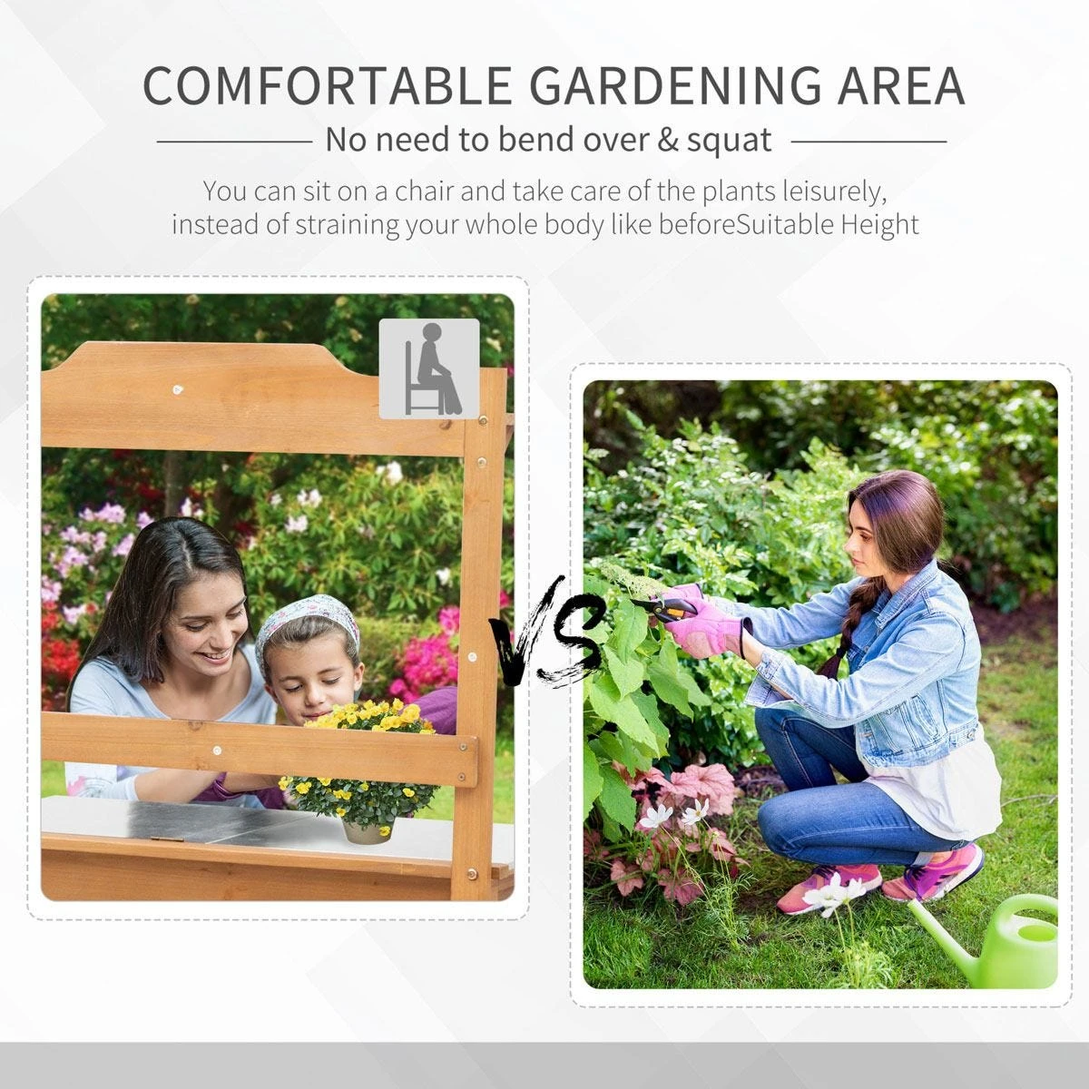 - STORAGE: Features a slatted bottom shelf, small top shelf with hooks and the main worktop, giving you room to work and keep all your equipment in one convenient place. The galvanized metal box can be used for storing and mixing soil