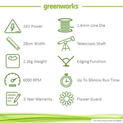 Greenworks 24V Cordless Grass Shears & Shrubber (2AH Battery & 0.5A Charger)