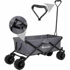 Tectake Foldable Garden Trolley With Wide Tires (80Kg Max Load) Grey