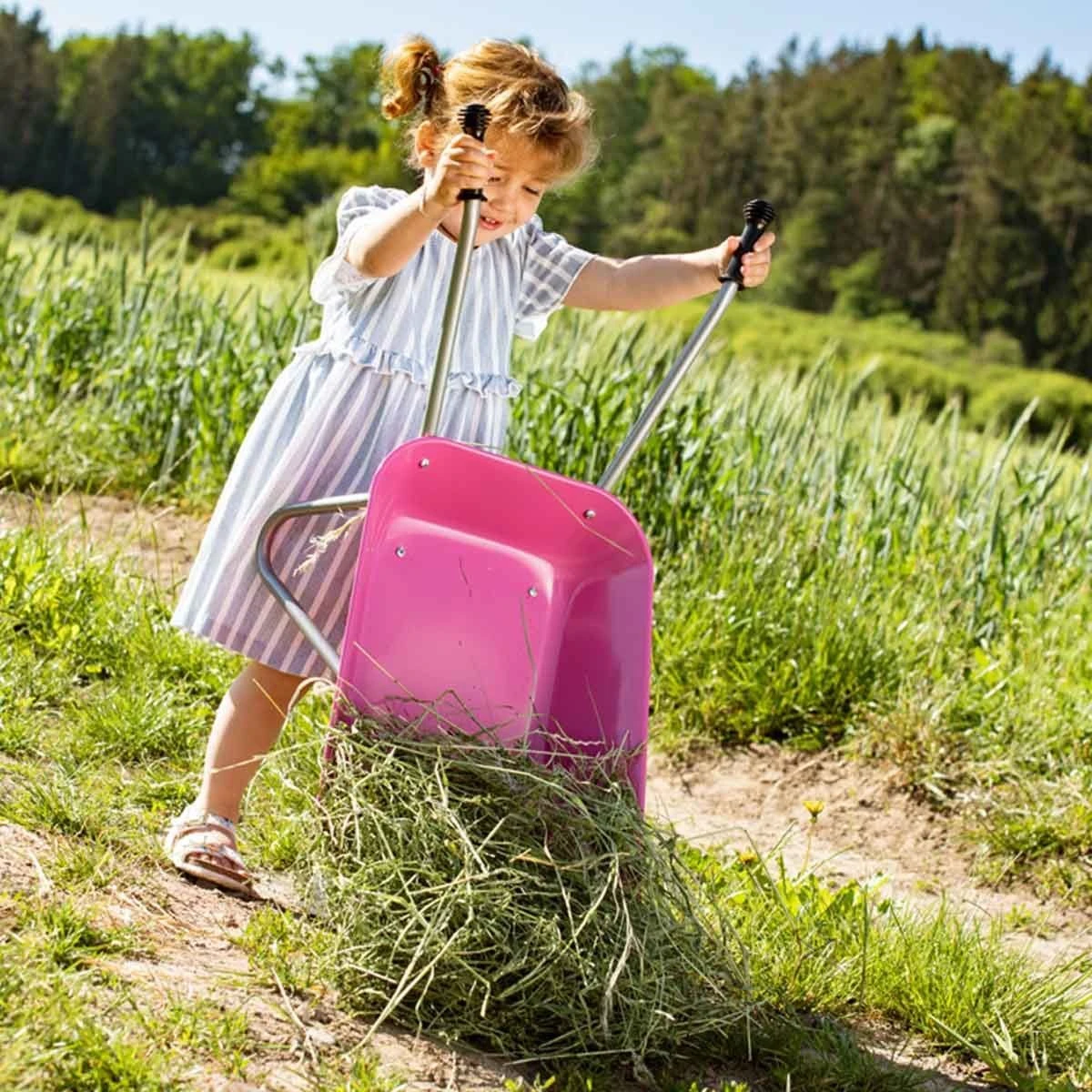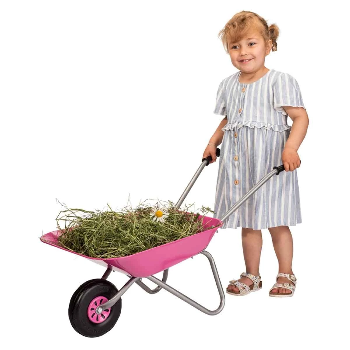 - Fun Design – Add a touch of fun to your outdoor toybox and gardening kit, with this pretty pink wheelbarrow.