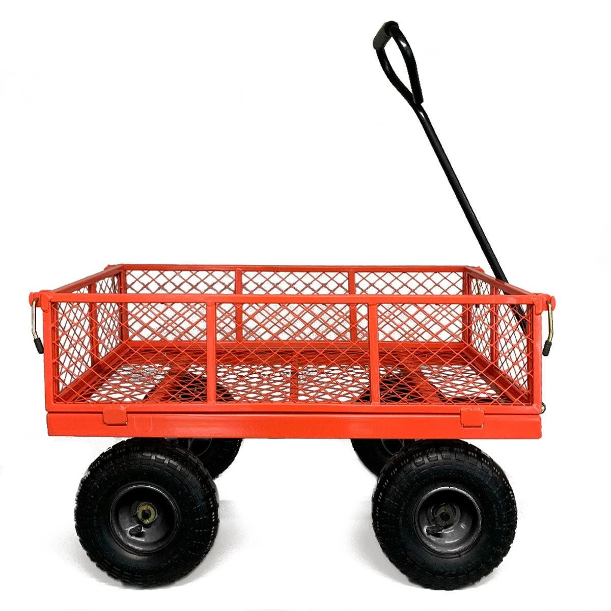 This durable 4 wheel metal mesh utility cart is versatile and adaptable for multiple uses. It has a large load capacity with 4 full height sides. Move larger items by quickly taking the sides off and converting it to a flatbed configuration. Want to take it with you? The handle can be quickly removed allowing you to get it into the back of a car (we’ve fitted it into many estate cars without even needing to lower the seats) or so you can store it in small spaces.