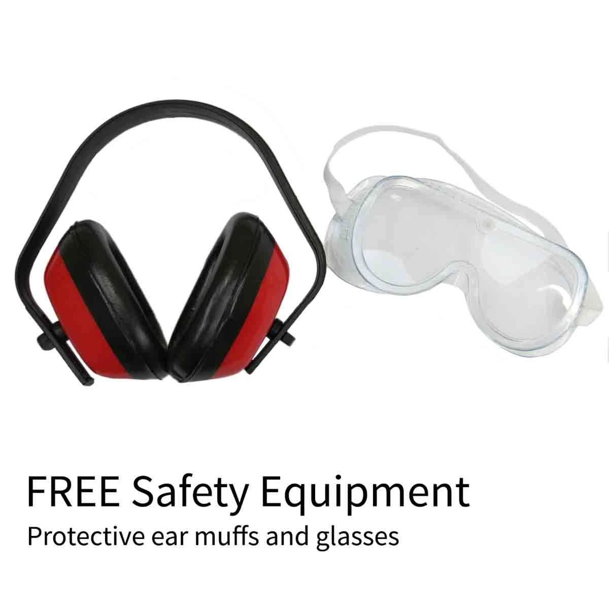 - FREE CE certified personal protection equipment (PPE) including safety glasses, gloves and ear protectors. These should be worn at all times when operating the machine