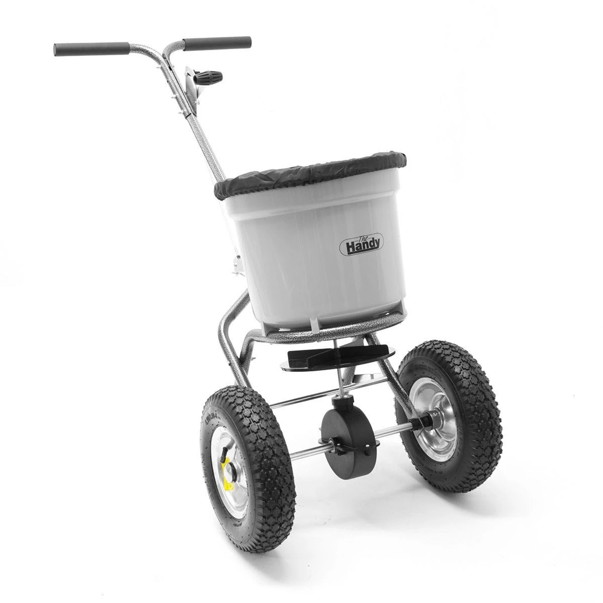 The Handy THS50 50lb Broadcast Spreader sits on large, wide-profile pneumatic tyres that not only provide high-grip traction for the spreading system, but also ensure a smooth run across rough ground. Perfect for keeping your grassed areas well maintained and healthy with ease.