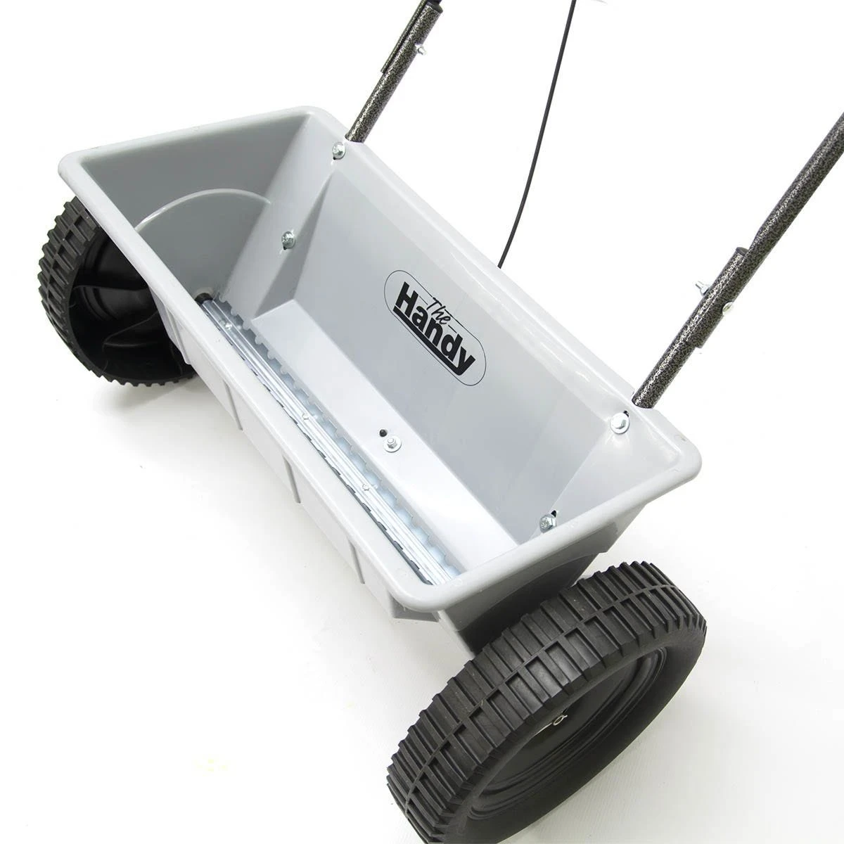 - Long lasting – The 27kg (60-litre) hopper on the Handy THDS Push-Type Drop Spreader is made from heavy-duty polypropylene that won’t corrode; and which will easily resist any accidental impact.