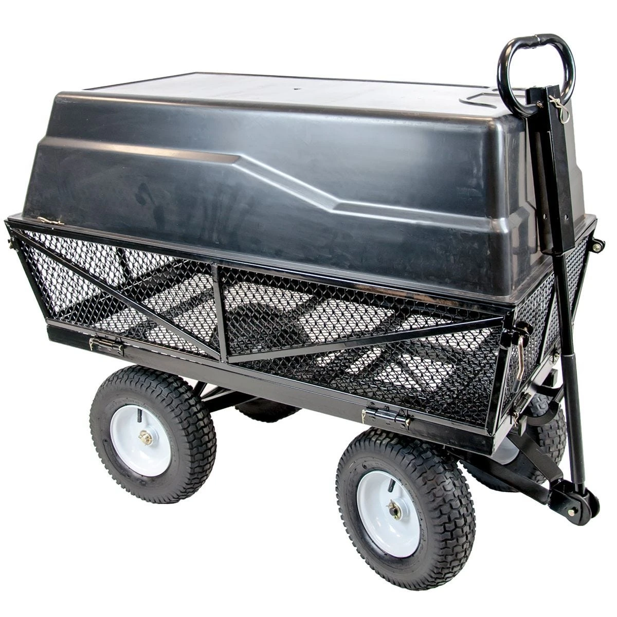 Not just a pull/push cart, The Handy THMPC can, if you need to transport very heavy items, be hooked-up to your garden-tractor or ATV and towed.