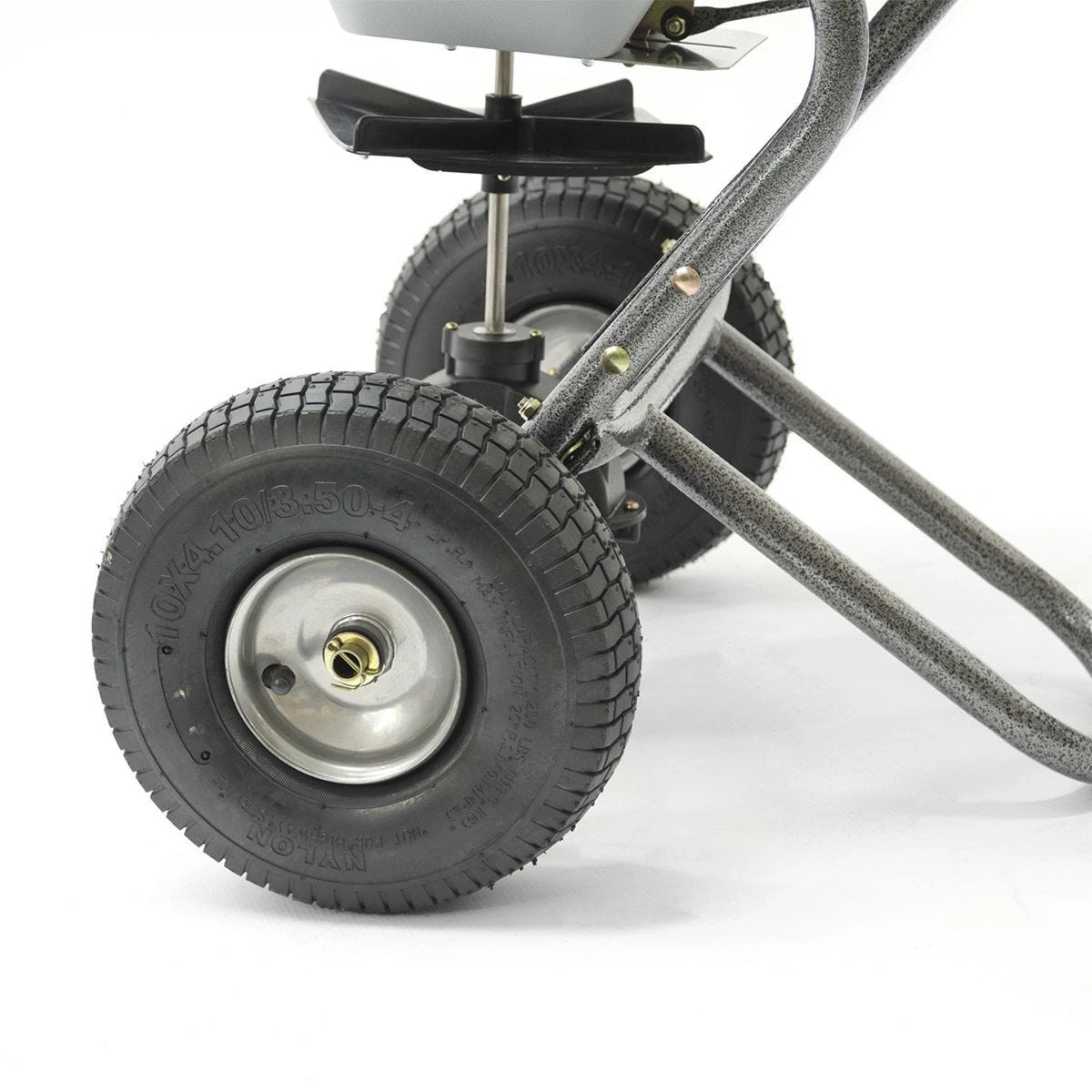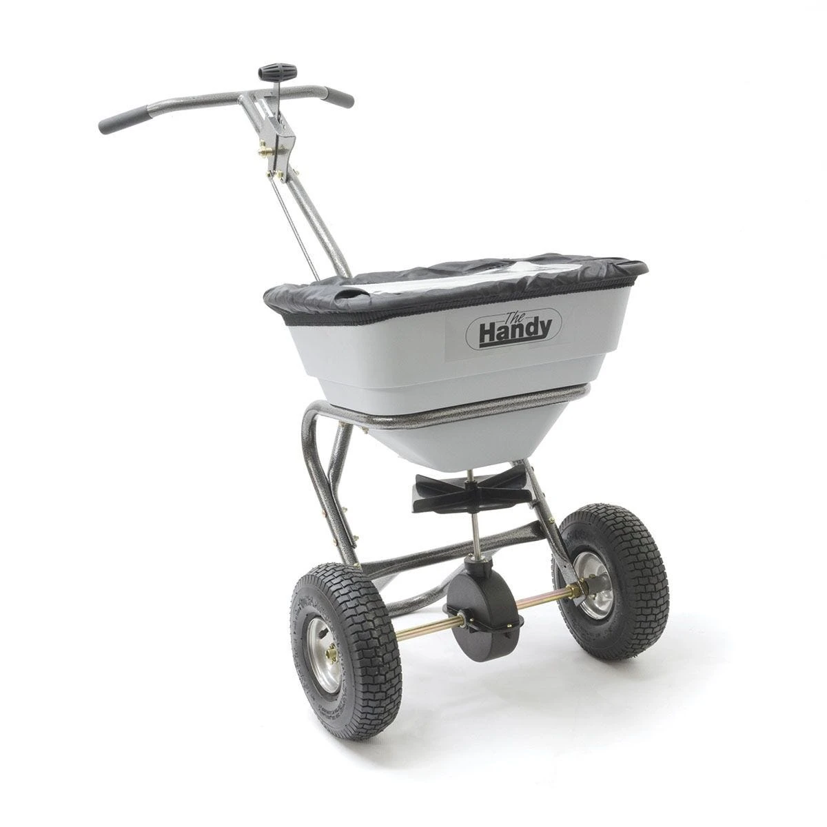 Featuring robust metal gearing and combining a spacious 32kg-capacity hopper with an impressive 3.66m spread-width (max.), this heavy-duty broadcast spreader from Handy excels in terms of durability and large-area work-rate. Attractive features include a comfortable T-bar handlebar; stability-optimising pneumatic tyres; and a flexibility-enhancing adjustable feed-control. Weighs-in at just 10.9kg.