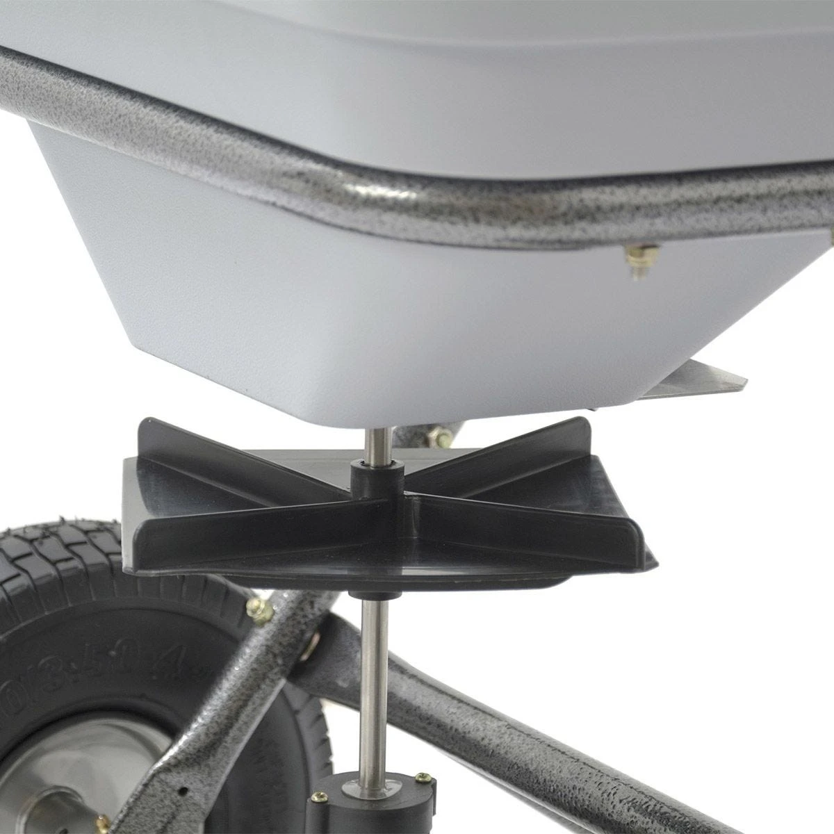 - Dual purpose – A dual-function unit, it can be used for spreading grass-seed, lawn-feed and pesticide during the spring- and summer-months; or ice-melt and processed salts through the winter period.