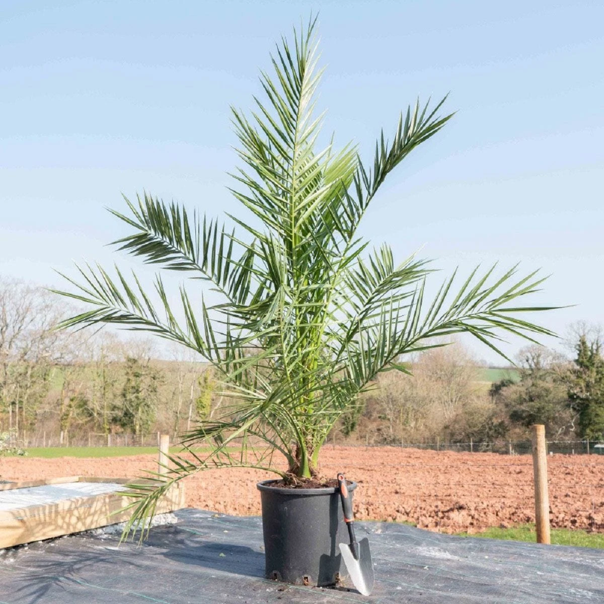 Best known as the Canary Date Palm, the Phoenix Palm is a striking specimen plant, which will add instant evergreen architecture to your conservatory or patio. The magnificent, stiffly upright leaves elegantly arch from a short, columnar trunk. Native to the Canary Islands, this tender perennial enjoys a sheltered sunny position in UK gardens but will cope with temperatures down to -6C (21F). An excellent evergreen exotic plant for the patio or conservatory, Phoenix Palms are well suited to growing in containers. Undeniably impressive, this popular plant holds a prestigious RHS Award of Garden Merit for its garden performance. Height: 1.5m (5′) when restricted in containers. If grown naturally in glasshouse borders this palm can reach 5m (16′) height and 3m (1′) spread.