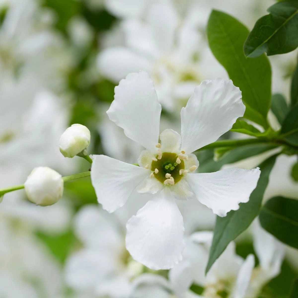 - Pretty pearly-white flower buds flushed with pink
