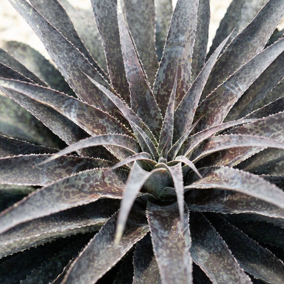 Mangave ‘Moonglow’ is a remarkable plant that adds a bold and architectural element to any space. This hybrid cross between an Agave and Manfreda combines the best traits of both, offering a faster growth rate, lack of sharp spines, plus a fuller rosette. The plant forms a tight rosette of narrow, fleshy, evergreen leaves with a glowing silvery-blue colour adorned with dark purple flecks, creating a stunning visual contrast. The leaves feature tiny spines along their margins, reminiscent of a fine comb. Mangave ‘Moonglow’ is a versatile plant suitable for various settings, including patios, conservatories, and exotic gardens.