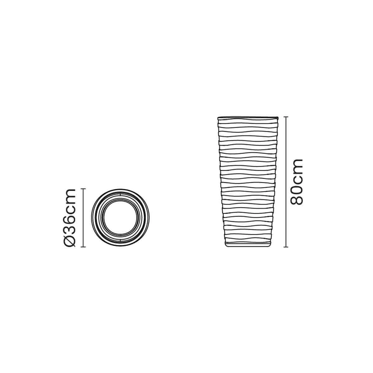 Tramontinas premium planter collection offers an outstanding choice of planters in a vast choice of sizes, shapes and colours, allowing you to create an eye-catching block or an eclectic mix and match to suit your own individual style and establish striking planted displays.Whilst perfect for enhancing any area around the home, both indoors and outdoors such as kitchen, family room, hallway, conservatory, balcony, patio, garden etc, they are equally well suited for commercial settings.They are made from rotomolded polyethylene which ensures high quality, which in turn means they are weatherproof and resistant to sun and rain damage. They can be filled directly with soil or used with a plant pot inside, and holes in the base ensure good drainage. The Grego planter displays a classic conical shape with a distinctive surface pattern, which, coupled with its prominent height, provides the opportunity to make a real statement with planting. Available in two colours graphite and terracotta, and in two sizes – 65cm and 80cm.
