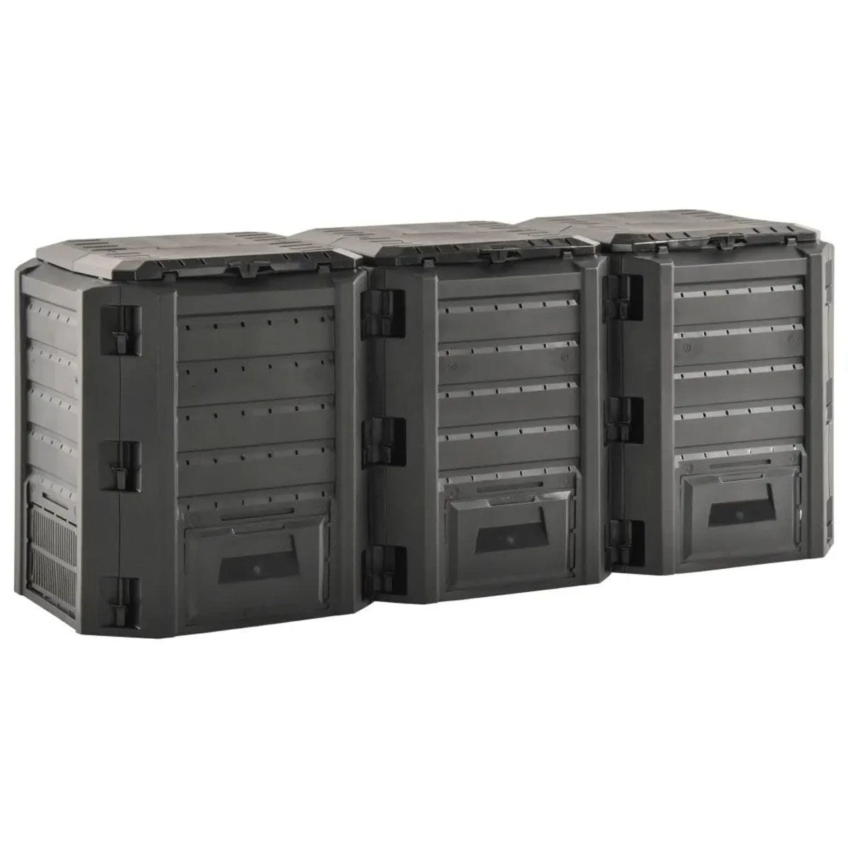 This weather-resistant garden composter bin helps to hasten the decomposition of organic matter and prepare fertiliser on your own. The waste converter is suitable for the garden as well as kitchen waste. High heat development inside of the composting unit promotes a quicker bacterial decomposition and produce better humus. Featuring a compact design, the garden composter takes up little space, but boasts large volume. The lid on top makes it easy for you to fill from above, and the flap ensures a simple removal of the humus. You can set up this composter without additional tools.