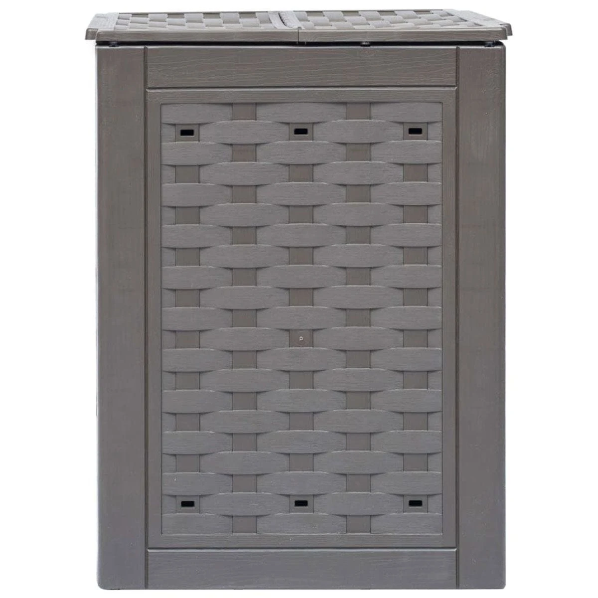 Our garden composter in a rattan look will surely be a perfect option to collect organic waste, including leaves, weeds, and lawn clippings. The compost bin is made of plastic which makes it UV and weather resistant. The unit has a lightweight body as well as a neat appearance. It has a split lid for optimal irrigation and ventilation. Thanks to ventilation holes in side part, this waste box can exquisitely achieve optimal composting. This square composter will come in very handy when recycling, and meanwhile it will blend naturally into any garden.