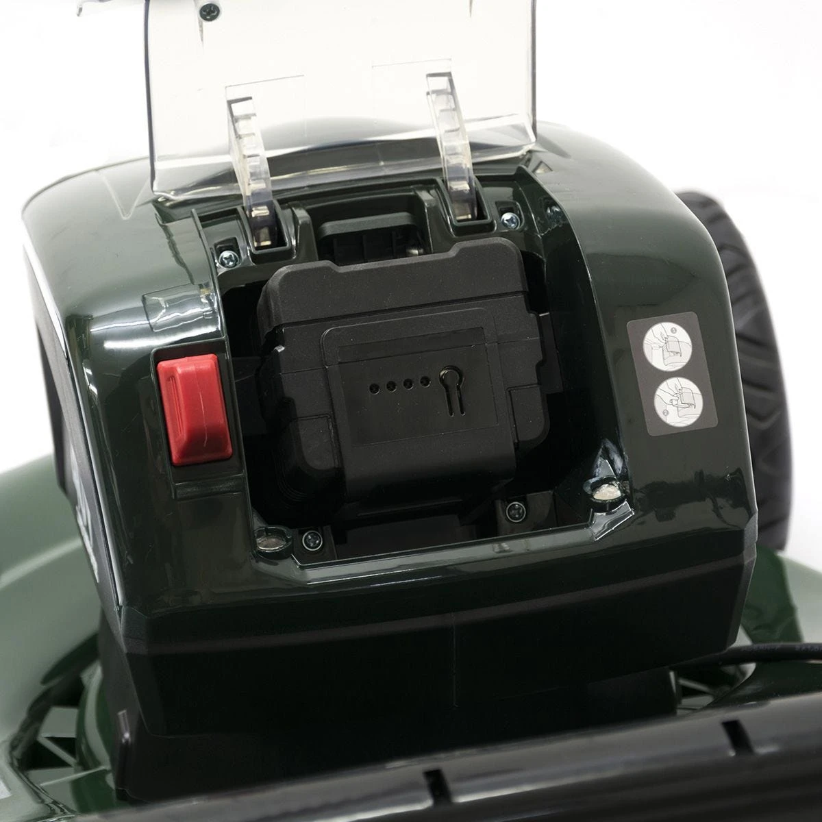 This battery powered rotary lawn mower is an easy to use, convenient and effective machine. The 40v lithium-ion battery offers up to 35 mins cordfree use on one charge and the roomy 60 litre grass collector keeps post cut clean up to a minimum.
