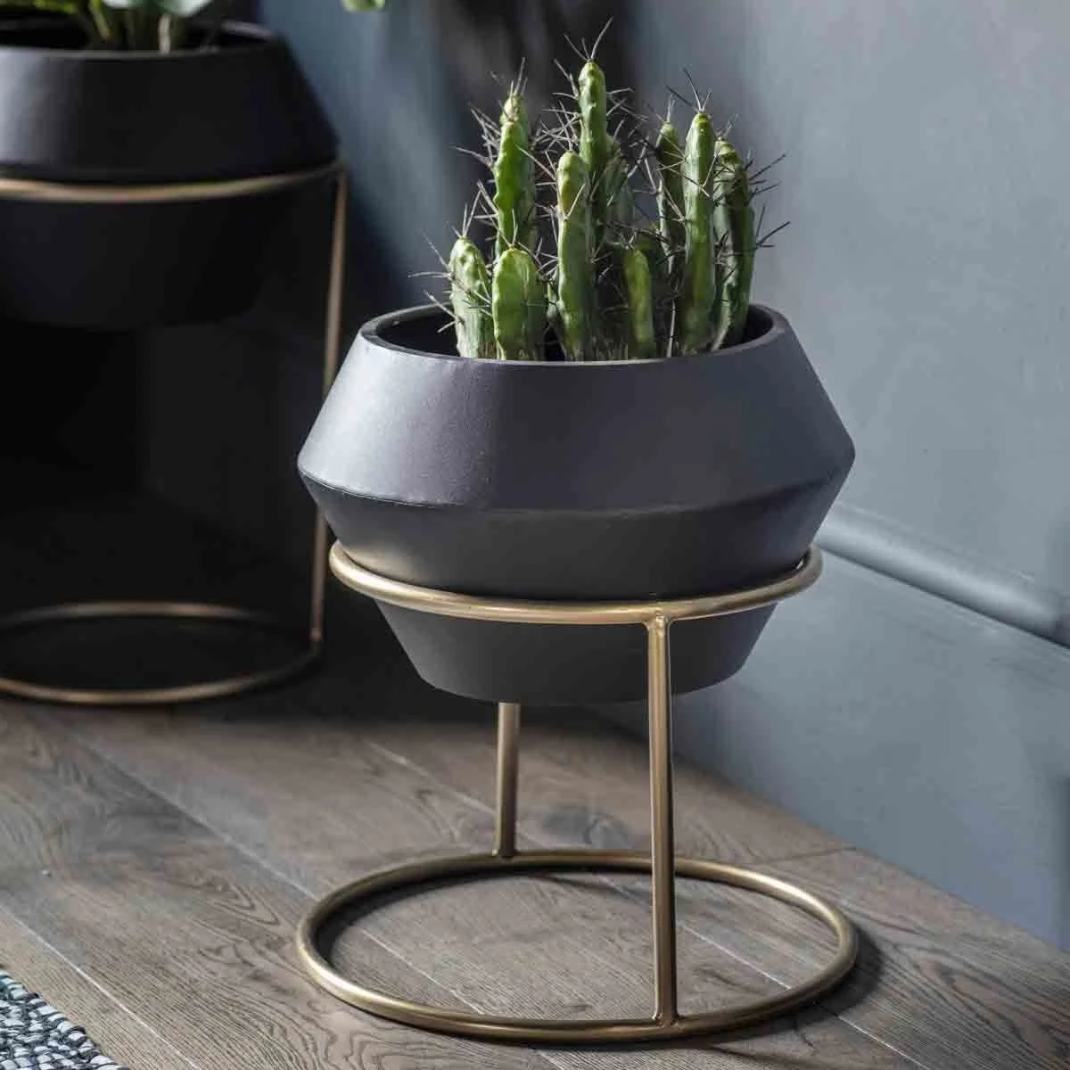 The Whitehall Metal Planter features an unusual black pot with a matt black finish combined with a stylish stand in a lovely gold finish to add a touch of understated glamour. A taller version is also available and the two looked great used together or individually.