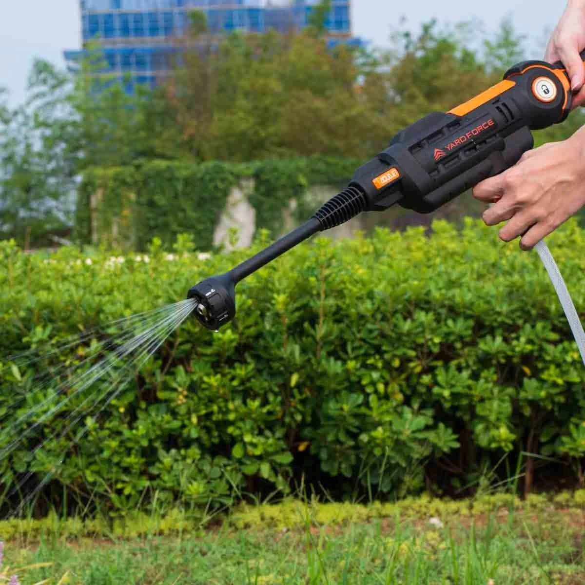 The Yard Force Aquajet cordless portable pressure cleaner is compact and easy to use from any water source. It can take on cleaning tasks in any location. It features an ergonomically designed, two-position rotary rear handle, a three-in-one adjustable jet nozzle for jet, turbo, and low-pressure cleaning, and two pressure settings. With all the accessories included you can tackle your outdoor (and even indoor) cleaning with ease and confidence.